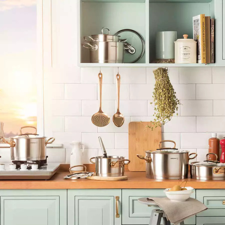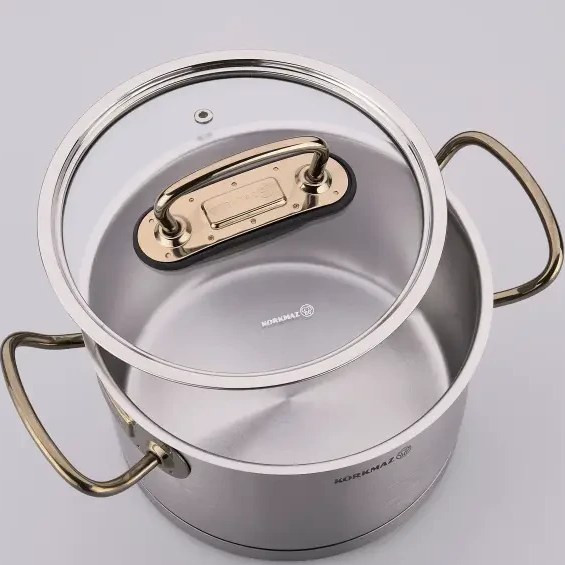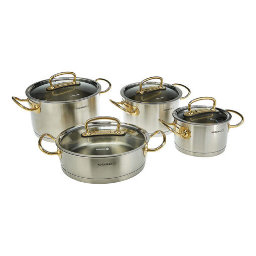 این سرویس قابلمه کرکماز دارای ٣ عدد قابلمه های زیبا در سایزهای 24, 20, 16 سانتیمتر می باشد. دارای یک ماهیتابه به سایز ٢٤ می باشد یکی از نکتههای جذاب این سرویس, طراحی مدرن آن است که ظاهر بسیار زیبایی دارد.علاقمندان به آشپزی همواره به دنبال بهترین ابزار و باکیفیتترین وسایل پخت و پز هستند. چون در زمان صرفه جویی میشود و طعم غذایی که طبخ میشود خوشمزهتر خواهد بود. علاوه بر کیفیت غذای آماده شده شما باید به اندازه کافی ظرف در اختیار داشته باشید تا سریعتر بتوانید آشپزی خود را به انجام برسانید. برای شما عزیزان یک پیشنهاد عالی داریم. سرویس قابلمه ٨ پارچه کرکماز پرولین مدل Korkmaz Proline A1148 Pot Set یک گزینه بهصرفه برای شماست.